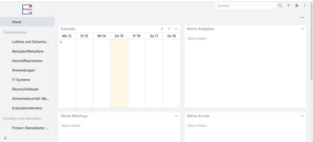 Übersicht Startseite ISMS-Tool